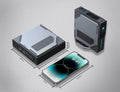 L’estetica è minimale, con linee pulite e finiture moderne, ma non rinuncia alla praticità. Il dispositivo è dotato di uno stand magnetico che consente di posizionarlo verticalmente, ottimizzando lo spazio sulla scrivania o per applicazioni come digital signage e sistemi embedded. Questa modalità verticale migliora anche il flusso d’aria e la dissipazione del calore, contribuendo alla silenziosità e alla stabilità operativa del sistema.